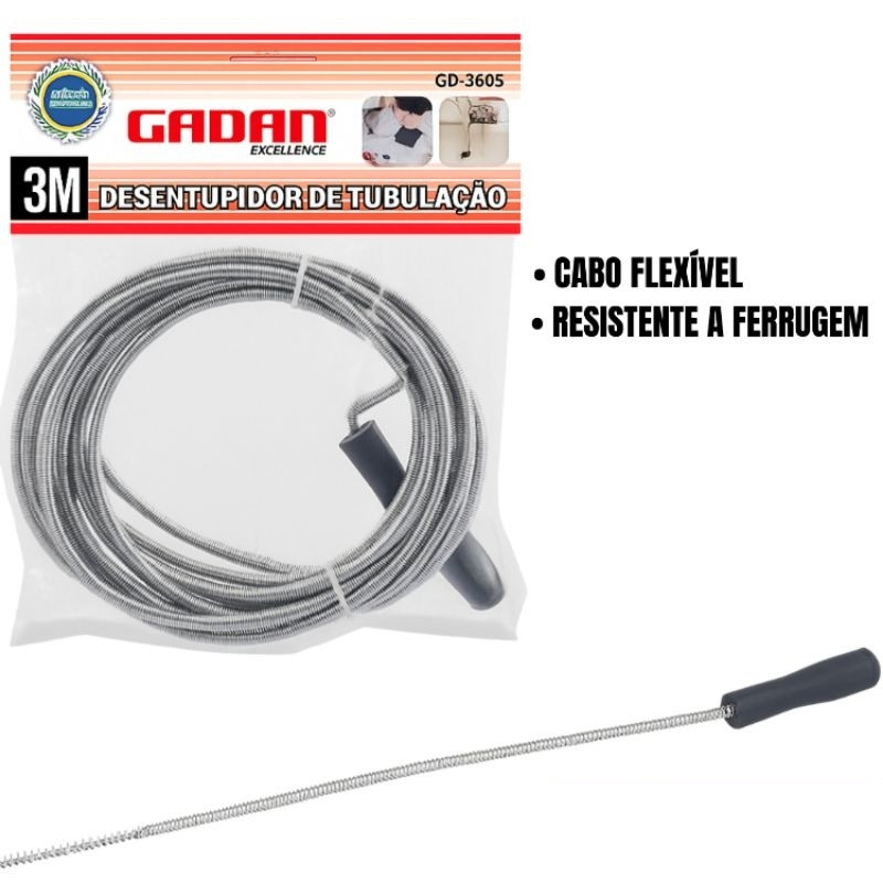 Desentupidor Tubulação manual 3 e 5m Pia Ralos Cabo Flexível e Resistente à Ferrugem