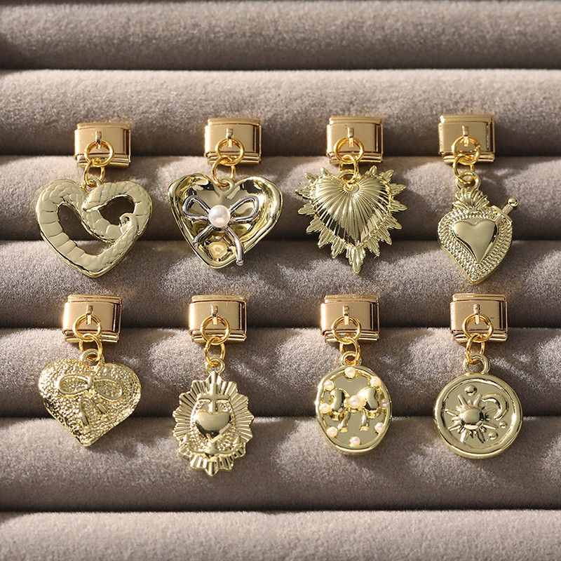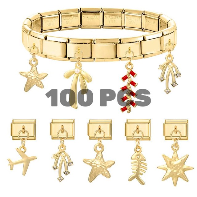 Design Dourado 100 Peças Amuletos Adequados Para Fazer Você Mesmo Pulseira Modular Italiana Links De Aço De 9 Mm