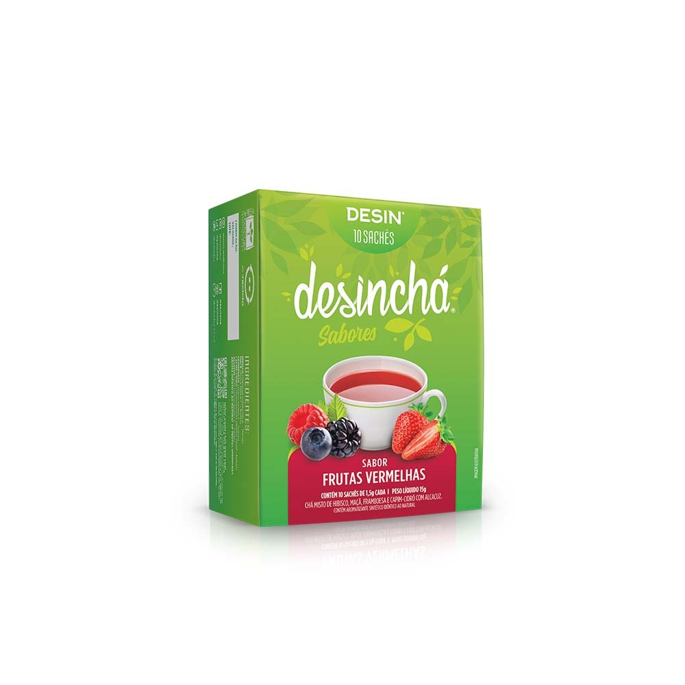 Desinchá Frutas Vermelhas possui um blend incrivelmente refrescante quando tomado geladinho e irresistível quando você faz quentinho. Pode ser consumido pela manhã, depois do almoço, no lanche da tarde, de tardezinha, à noite, depois do jantar e até antes de dormir, pois a fórmula é sem cafeína. INGREDIENTES Hibisco • Maçã • Framboesa Capim-Cidró • Alcaçuz • Aroma MODO DE PREPARO: Esquente 200ml de água. Antes de começar a ferver, já pode desligar.Depois basta me colocar dentro da água quente, tampar e esperar por 5 minutinhos. E pronto!Prefere me tomar gelado? É só fazer tudo igualzinho e, no final, adicionar gelo.Fico bom por aproximadamente 24 horas, guardando na geladeira.PERGUNTAS FREQUENTES Quando devo consumir o produto? O consumo pode ser realizado em qualquer hora do dia. Desinchá Frutas Vermelhas quebra o jejum? Não, o produto não possui aporte nutricional que interfira no jejum. O produto é vegano? Sim, todos os ingredientes são naturais e não apresentam nenhuma contaminação de origem animal. Quais são as contraindicações de consumo? Recomendamos que gestantes, lactantes e pessoas em condições específicas de saúde conversem com um médico/nutricionista para garantir que o consumo seja seguro, considerando sua individualidade biológica. O produto contém cafeína? Os ingredientes presentes na fórmula não possuem cafeína. Posso adicionar açúcar ou adoçante? Não recomendamos a adição de açúcar ou adoçante! Para uma adaptação do sabor ao paladar, você pode adicionar algumas gotas ou rodelas de limão ou laranja, por exemplo.