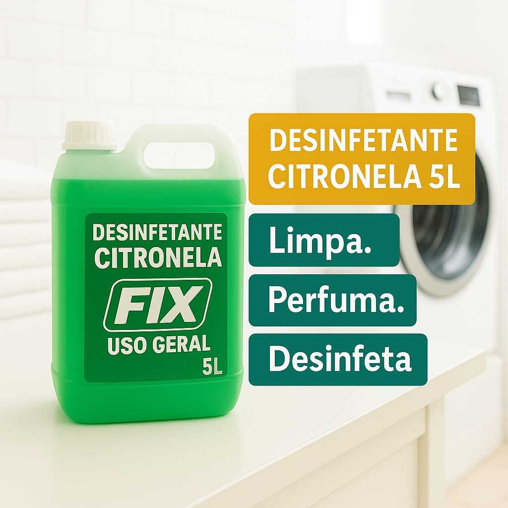 | Desinfetante Uso Profissional 5 Litros Citronela Fix Perfume Duradouro este produto | R$ 17,99 | 10% | 4.8/5 | — |