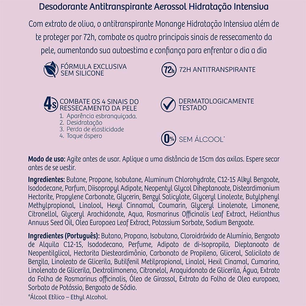 Deso Antitranspirante Monange Aerossol Hidratação Intensiva150ml