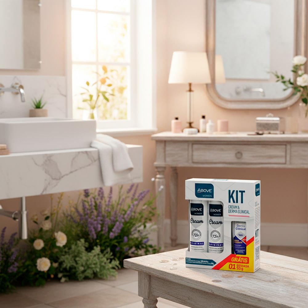 Kit Above Women Cream & Derma Clinical - 2 Antitranspirantes Aerossol Cream 72h + Sérum Clareador Kit Above Women Cream & Derma Clinical: Proteção Avançada e Cuidado Clareador O Kit Above Women Cream