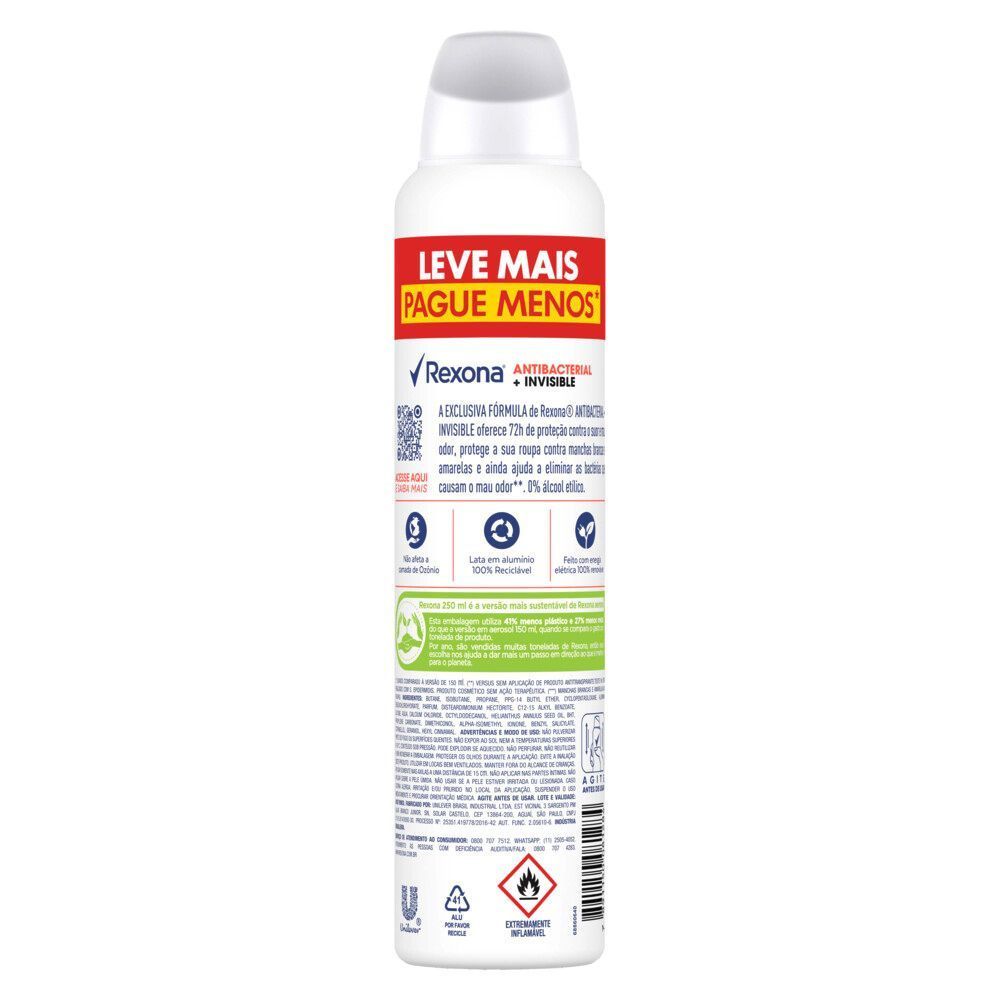 Desodorante Aerosol Antitranspirante Rexona Antibacterial + Invisible 250ml