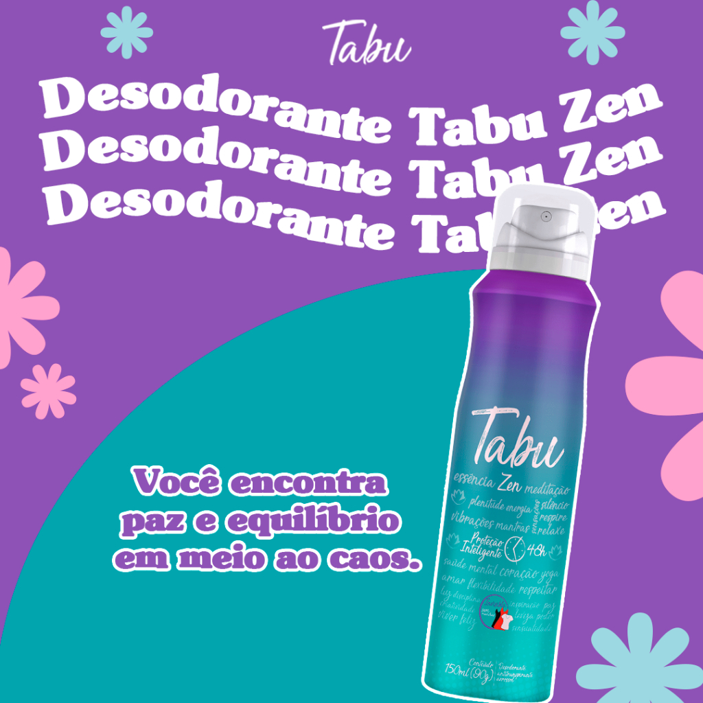 ✨ Fragrância Feminina Para quem busca um desodorante moderno, eficaz e com um perfume equilibrado, o Desodorante Aerosol Antitranspirante Tabu Zen é a escolha certa! Desenvolvido com tecnologia antitranspirante de alta performance, ele age diretamente no controle do suor, mantendo sua pele protegida e seca por mais tempo. Sua fragrância é um convite ao relaxamento, trazendo uma sensação revigorante que dura o dia inteiro. Sinta-se confiante e confortável, independentemente da ocasião! Benefícios: ✅ Proteção contra suor e odores por até 48 horas ✅ Fragrância suave e relaxante do Zen ✅ Pele fresca e protegida durante todo o dia ✅ Fácil aplicação com a praticidade do aerosol ✅ Dermatologicamente testado, adequado para todos os tipos de pele Modo de Uso: 1️⃣ Agite bem o aerosol antes de usar. 2️⃣ Aplique a uma distância de 15 cm das axilas, com a embalagem em posição vertical. 3️⃣ Use após o banho ou sempre que desejar refrescar-se. Composição: BUTANE/ PROPANE/ ISOBUTANE/ ALUMINUM CHLOROHYDRATE/ CYCLOPENTASILOXANE/ ISOPROPYL MYRISTATE/ DIMETHICONE/ C12-15 ALKYL BENZOATE/ QUATERNIUM-18 HECTORITE/ PROPYLENE CARBONATE/ CYCLOHEXASILOXANE/ 2-METHYL 5-CYCLOHEXYLPENTANOL/ PARFUM (ALPHA-ISOMETHYL IONENE/ AMYL CINNAMAL/ BENZYL SALICYLATE/ CITRONELLOL/ HEXYL CINNAMAL/ HYDROXYCITRONELLAL/ LINONENE/ LINALOOL).