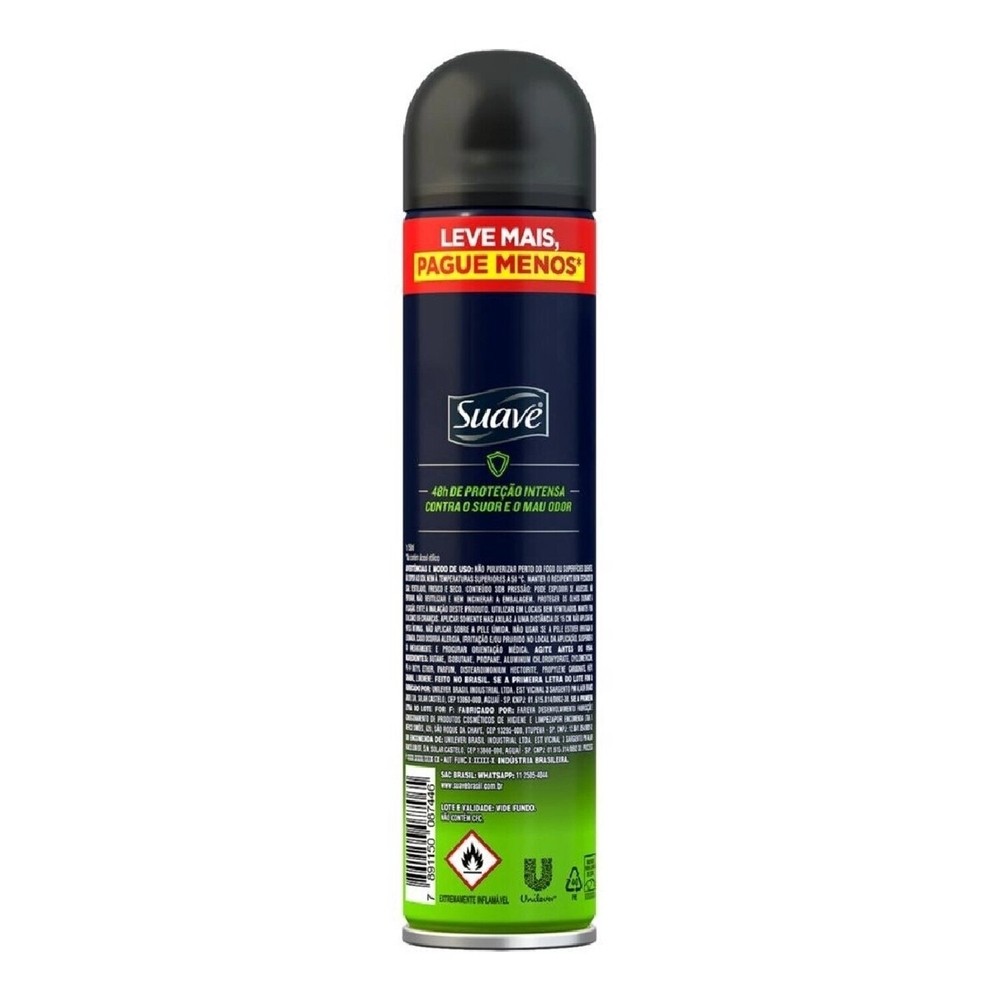 | Desodorante Aerosol Suave Men Protecao Intensa 48h 200ml este produto | R$ 15,02 | — | 5.0/5 | — |