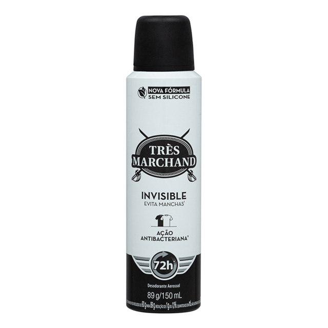 O Desodorante Aerossol Antitranspirante Très Marchand Invisible proporciona 72 horas de proteção, mantendo a sua segurança e bem-estar durante o dia. Além disso, trata a transpiração sem deixar nenhum resíduo nas axilas, garantindo conforto e discrição. Foi desenvolvido com aroma inspirado em perfumaria fina, mantendo em destaque sua personalidade masculina. Agora com nova fórmula sem silicone que protege você e o meio ambiente: são 12% a menos de CO² emitido, ajudando a reduzir o impacto ambiental. Com o Desodorante Aerossol Très Marchand Masculino Invisible, você não precisará se preocupar com manchas.