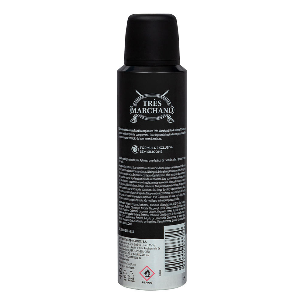 Desodorante Aerossol Antitranspirante Très Marchand Masculino Black 150ml