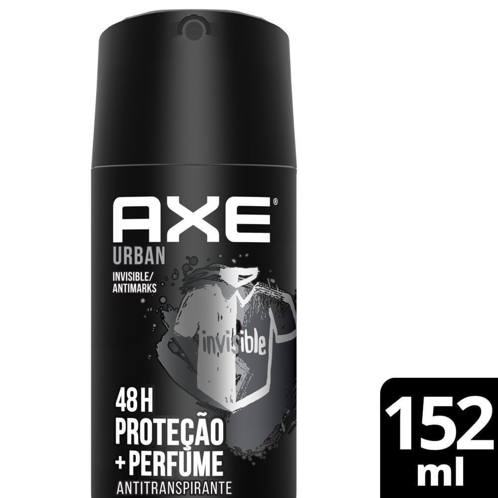 DESODORANTE ANTITRANSPIRANTE AXE URBAN AEROSOL MASCULINO • A nova fórmula do Antitranspirante Aerosol Axe Urban Invisible te mantém protegido contra mau odor e manchas, além de te deixar fresco o dia