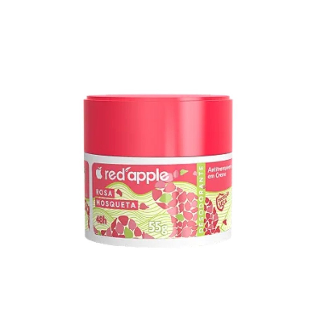 Desodorante Antitranspirante Creme 48 hrs de Proteção Rosa Mosqueta 55g - Red Apple kit 6 Unidades