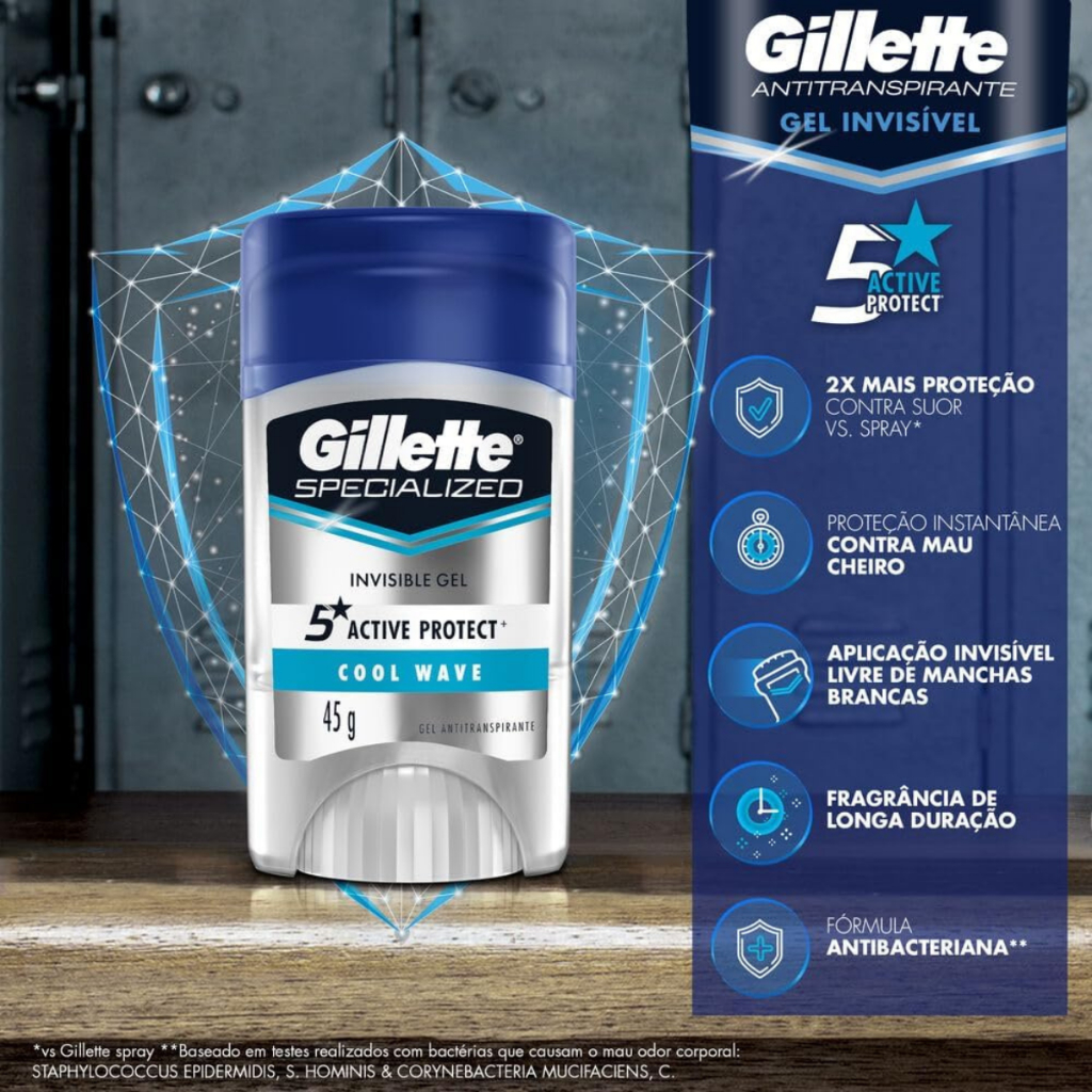 | Desodorante Antitranspirante Gillette Em Gel Cool Wave Invisible Ge... este produto | R$ 27,89 | 34% | 4.9/5 | 3 |