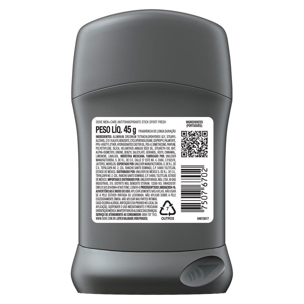 Desodorante Antitranspirante Stick Dove Men+Care Sport Fresh 45g