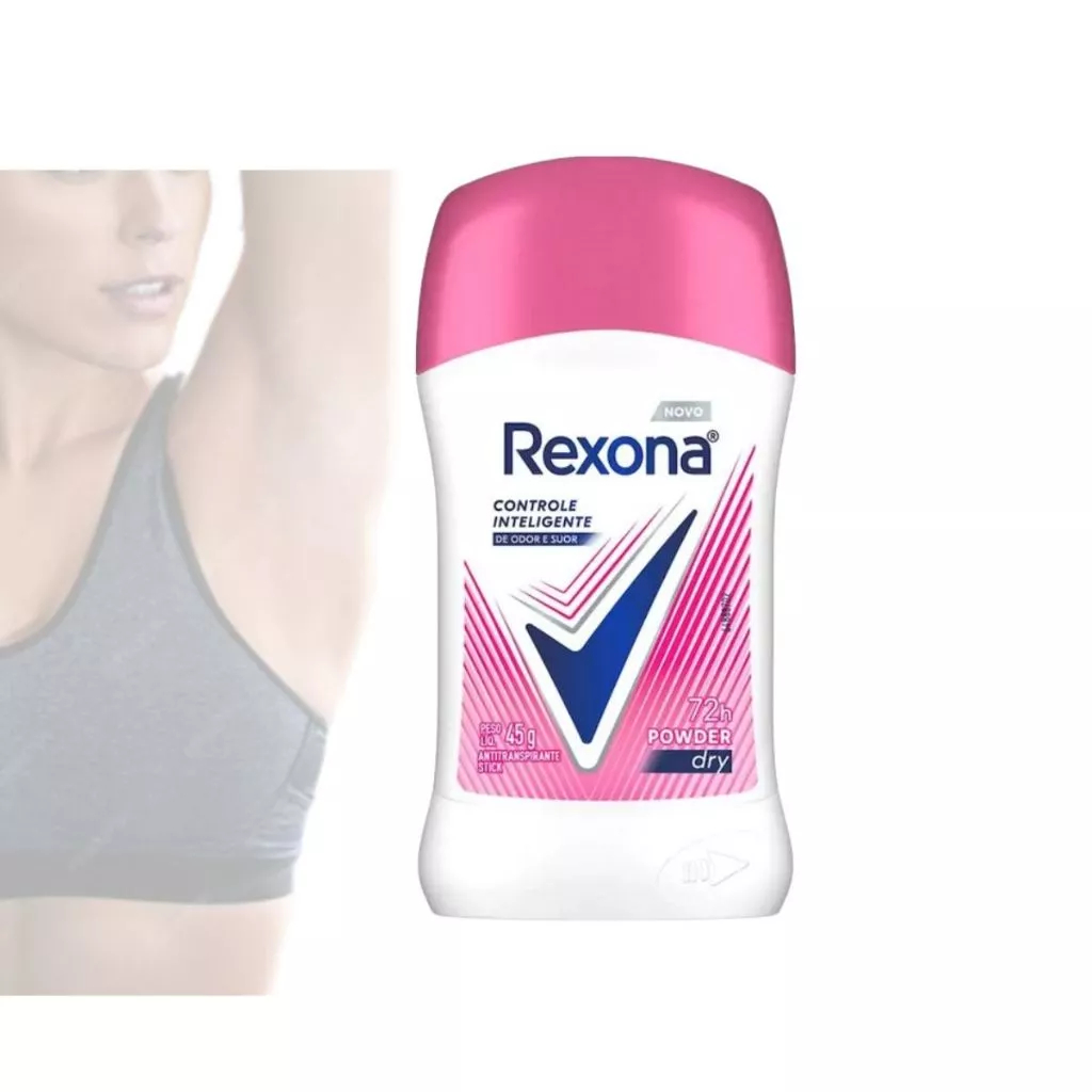 | Desodorante Antitranspirante Stick Rexona Powder Dry 45g este produto | R$ 23,90 | 20% | 5.0/5 | 3 |