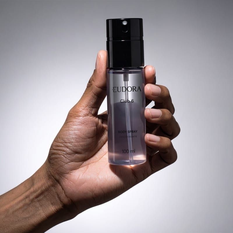 Body Spray Eudora Club 6: Proteção e Frescor com Fragrância Marcante Para o homem que busca confiança e estilo, o Body Spray Eudora Club 6 oferece a combinação perfeita entre proteção eficaz contra os odores causados pela transpiração e uma fragrância fougère amadeirada intensa, inspirada no exclusivo Club 6. Benefícios que você sente na pele: Proteção duradoura contra maus odores, mantendo você fresco durante todo o dia. Frescor e perfumação marcante, para uma sensação de limpeza e poder. Não resseca a pele, ideal para uso diário. Uso versátil em todo o corpo, garantindo cuidado completo. Fórmula vegana, livre de alumínio e parabenos, respeitando sua pele e o meio ambiente. Praticidade e estilo na sua rotina Com embalagem compacta e prática, o Body Spray Club 6 é perfeito para levar na mochila, bolsa de ginástica ou nécessaire, acompanhando seu ritmo acelerado com facilidade. Fragrância exclusiva para o homem moderno Inspirado no Club 6, sua fragrância fougère amadeirada traz uma personalidade forte e elegante, ideal para quem deseja marcar presença com sofisticação e frescor. Transforme sua rotina diária com o Body Spray Eudora Club 6 e sinta-se confiante, protegido e perfumado a qualquer hora do dia. Garanta já o seu e experimente o frescor que acompanha seu estilo de vida!
