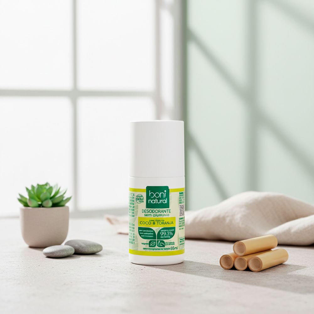 Desodorante Boni Natural Roll-On Sem Alumínio 55ml - Óleo de Coco & Toranja, Vegano, 24h de Proteção Desodorante Boni Natural Roll-On: Proteção 24h, Sem Alumínio e Vegano O Desodorante Roll-On Boni Na