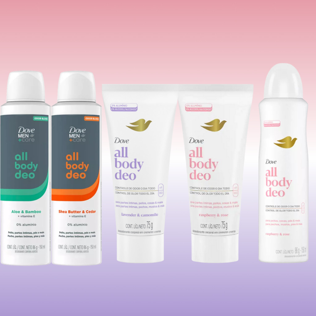 Apresentamos o Novo Dove All Body Deo Aerossol 150 ml – a revolução em desodorantes corporais que vai além das axilas. Com fórmula inspirada em skincare, este desodorante proporciona proteção contra odores por todo o corpo, com delicadeza e eficácia. Benefícios principais: Cobertura do corpo todo: ideal para aplicar em áreas como peito, coxas, pés, costas e mais Ingredientes que cuidam da pele: enriquecido com vitamina E, conhecida por revitalizar e hidratar a pele Fórmula gentil e segura: Sem álcool etílico* Livre de alumínio Dermatologicamente testado e certificado Cruelty-Free (PETA) Embalagem 100% reciclável e vegana Sensação refrescante e fragrâncias elegantes — como Raspberry & Rose ou Lavander & Camomile — que oferecem uma experiência suave e revitalizante Aplicação recomendada: Agite bem antes de usar para ativar os ingredientes. Aplique a aproximadamente 15 cm da pele, evitando rosto e genitais. Deixe secar antes de se vestir para máxima eficácia