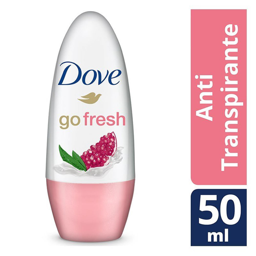 DESODORANTE ANTITRANSPIRANTE DOVE GO FRESH ROMÃ E VERBENA ROLL-ON O desodorante antitranspirante Dove rollon Romã e Verbena combina a proteção 48 horas e o tradicional 1/4 de creme hidratante na refre