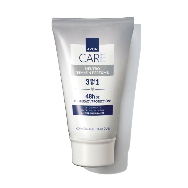 PRODUTOS NOVOS! VALIDADE A PARTIR DE: 05/2027 DESODORANTE EM CREME BISNAGA AVON 50G O Desodorante em Creme AVON proporciona 48 horas de proteção antitranspirante e protege efetivamente contra os odores e a umidade causados pela transpiração. Seu formato em bisnaga com aplicador cônico traz muito mais praticidade e higiene na aplicação. A linha de desodorantes Avon foi especialmente desenvolvida para combinar proteção desodorante e conforto para o seu dia a dia. PRINCIPAIS BENEFÍCIOS: - 48 horas de proteção antitranspirante; - Fornece proteção eficaz e de longa duração contra maus odores; - Fórmula sem álcool e infundida com hidratantes, que ajudam a deixar a pele macia e suave ao toque; - Deixa as axilas sequinhas; - Não mancha a roupa; - Embalagem com aplicação prática e higiênica, com aplicador cônico.