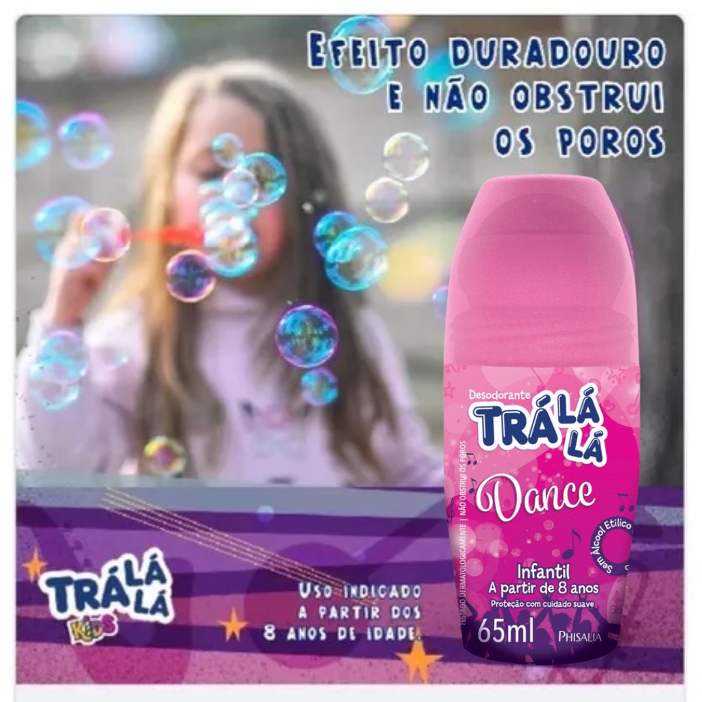 Desodorante Infantil Sem Alumínio e Sem Álcool Desodorante Para Criança Trá Lá Lá 65 ml Informações do produto Desodorante Infantil Trá Lá Lá Bom de Bola Roll-on 65ml - Phisalia Encontre Desodorante Infantil Trálálá Bom de Bola Roll-on 65ml na Drogaria Araujo! Desenvolvido especialmente para crianças maiores de 8 anos. Não mancha a roupa. Confira! Informações complementares Classificação Infantil Formato Roll-on Marca Trá Lá Lá Volume 65 ml
