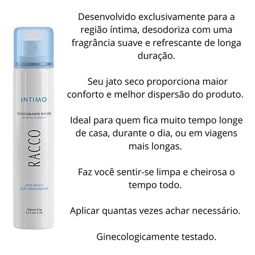 Desodorante Intimo Jato Seco Feminino Racco 100ml Para Virilha Longa Duração Spray Íntimo Original