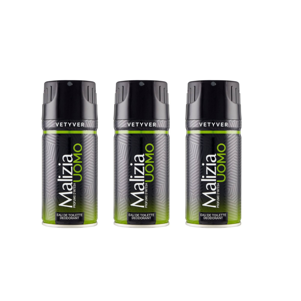Desodorante Malizia Uomo Vetyver EdT Masculino 150ml Kit 3 Unidades