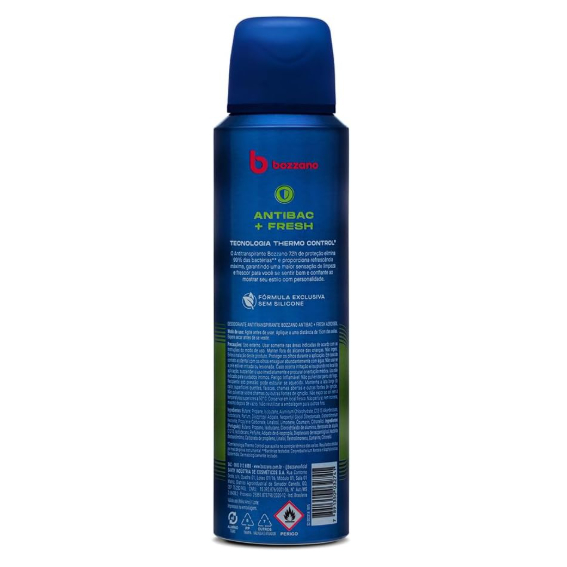 Desodorante Masculino Bozzano Fresh Aerosol 150mL: proteção eficaz contra o suor e mau odor por até 48h. Fragrância refrescante, sensação de frescor prolongado e secagem rápida. Ideal para o cuidado diário do homem moderno.