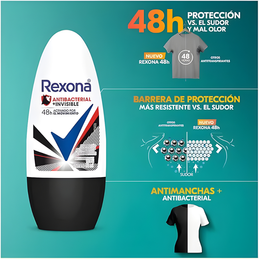 Desodorante Rexona Roll-on Women Antibacteriano Invisible 50ml Principais Características: • Fórmula com proteção antibacteriana, que combate até 99,9% das bactérias causadoras do mau odor. • Tecnologia Invisible que minimiza manchas brancas em roupas escuras e marcas amarelas em roupas claras. • Proteção antitranspirante por até 48 horas, mantendo as axilas secas e seguras. Benefícios: • Reduz o mau odor ao eliminar bactérias, proporcionando frescor prolongado. • Ideal para quem busca segurança sem comprometer o visual das roupas. • Aplicação prática e precisa com roll-on que desliza suavemente na pele. Diferenciais do Produto: • Combinação entre proteção antibacteriana e tecnologia anti-manchas, oferecendo cuidado completo. • Fórmula dermatologicamente testada, suave para a pele e eficaz no controle do suor. • Compacto e fácil de levar na bolsa ou nécessaire. Especificações Técnicas: • Peso: 50ml Instruções de Uso: Aplicar sobre as axilas limpas e secas. Aguardar a secagem completa antes de se vestir. Avisos e Precauções: • Uso externo. • Não aplicar sobre a pele lesionada ou irritada. • Em caso de irritação, suspender o uso e procurar orientação médica. • Manter fora do alcance de crianças. O que está incluso? 1 desodorante Rexona Roll-on Women Antibacteriano Invisible 50ml ---- DÚVIDAS FREQUENTES ---- Os produtos são originais? Sim. Todos os nossos produtos são originais. Emitem nota fiscal? Sim. Emitimos nota fiscal para todos os pedidos.