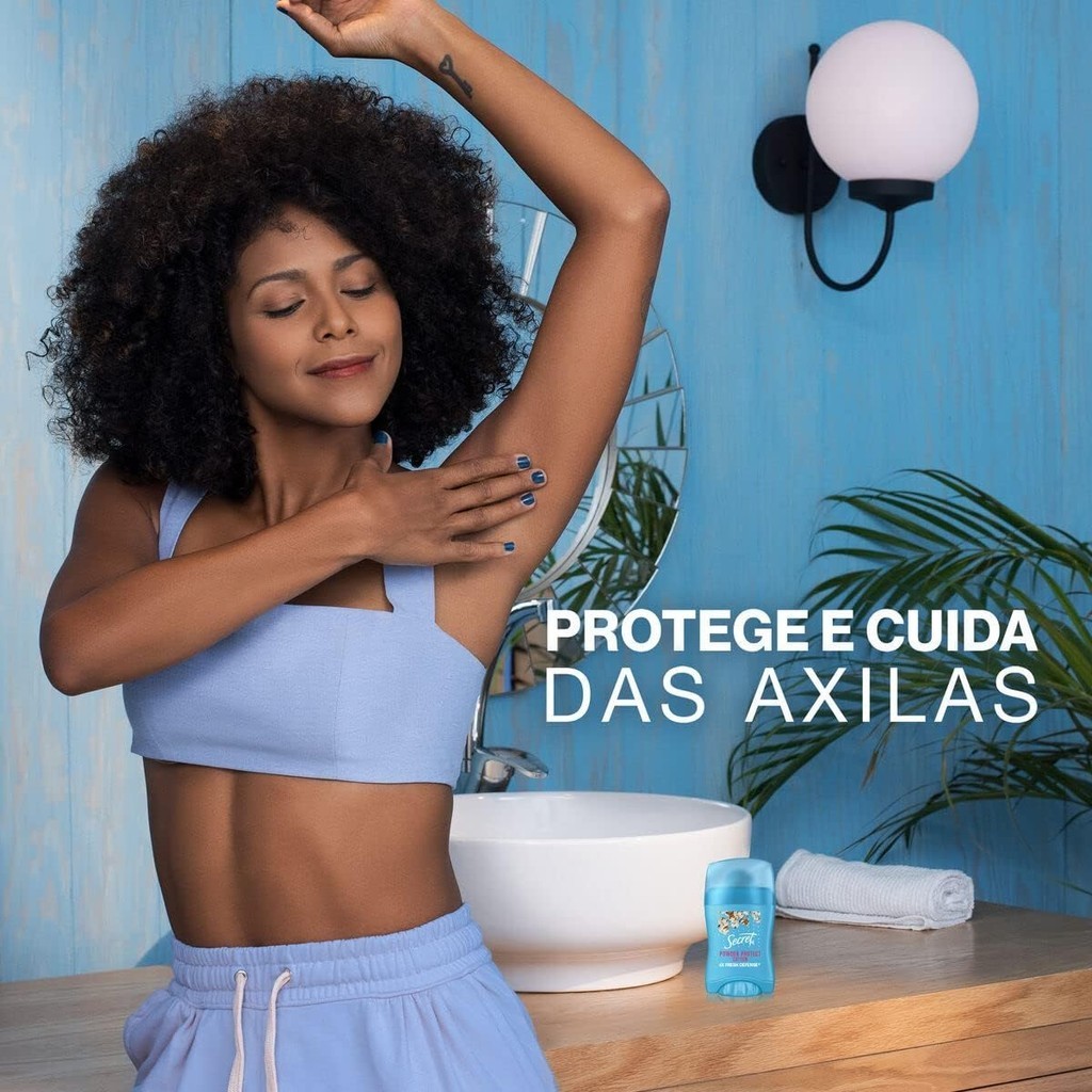 Desde 1956, Secret oferece para as mulheres a confiança que elas precisam para enfrentar qualquer desafio, dando a elas a proteção superior contra o suor e o mau cheiro nas axilas. Porque sabemos que as necessidades do corpo das mulheres mudam ao longo do dia e com o tempo; os antitranspirantes e desodorantes da Secret foram especialmente desenhados para se adaptarem às mudanças do corpo de uma mulher (ciclos hormonais, estresse, mudanças de temperatura) e responder com uma proteção personalizada contra o suor e/ou mau cheiro. Além disso, Secret é uma marca livre de crueldade certificada pela PETA. Bastão antitranspirante Com activecaps controla o mau cheiro ajudando a eliminá-lo Fragrância duradoura Aplicação suave e seca