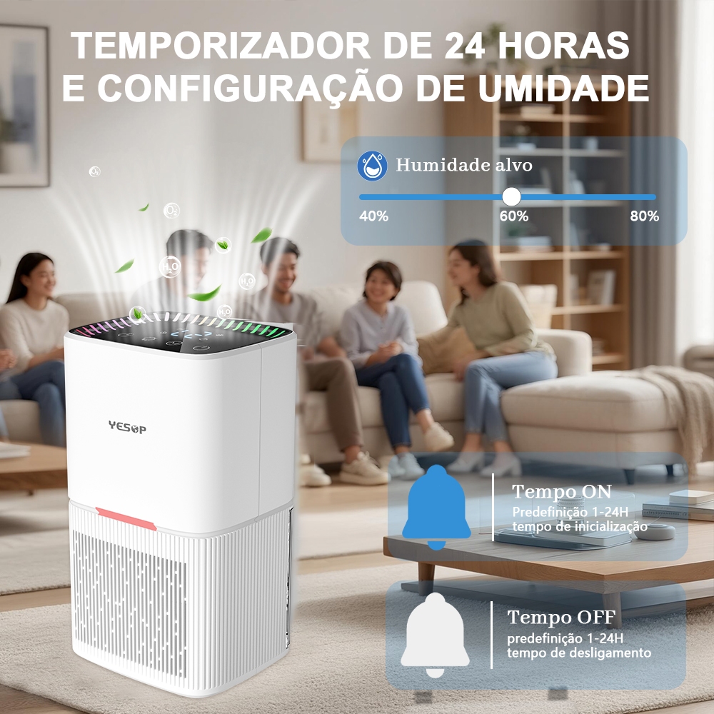 Desumidificador de Ar Eletrico 1.6L Yesop Tela LED Digital Touch Bivolt Silencioso Grande AntiMofo Portátil Casa Escrito
