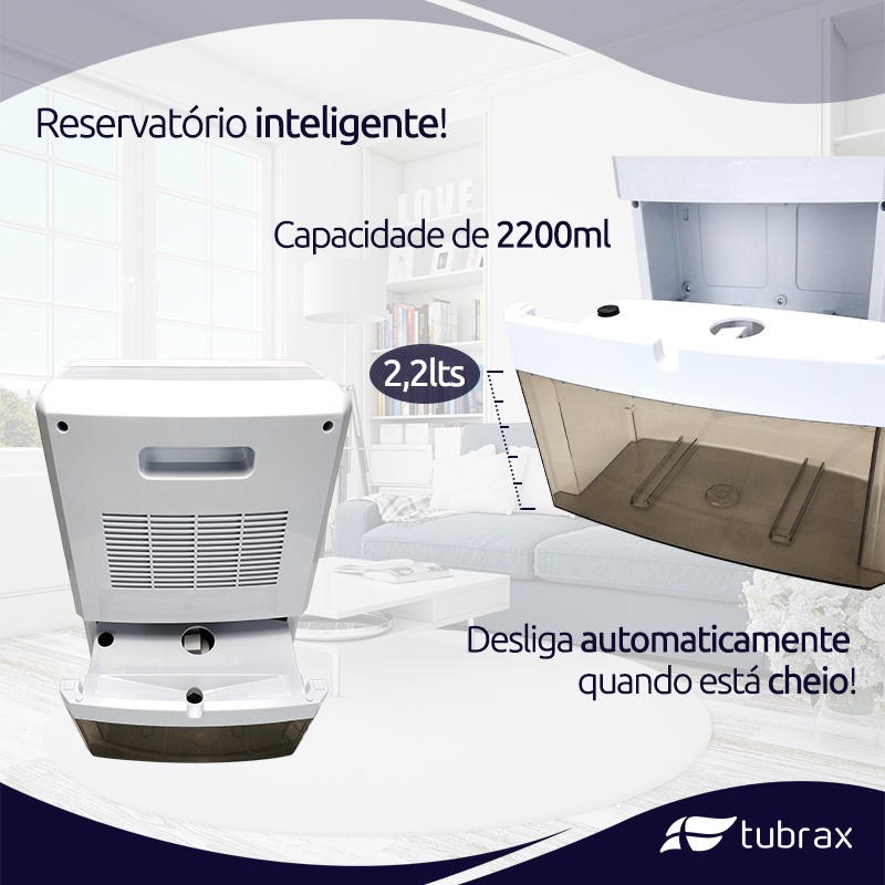 Desumidificador de Ar Elétrico Led 127-220v Antimofo 2200ml Tubrax
