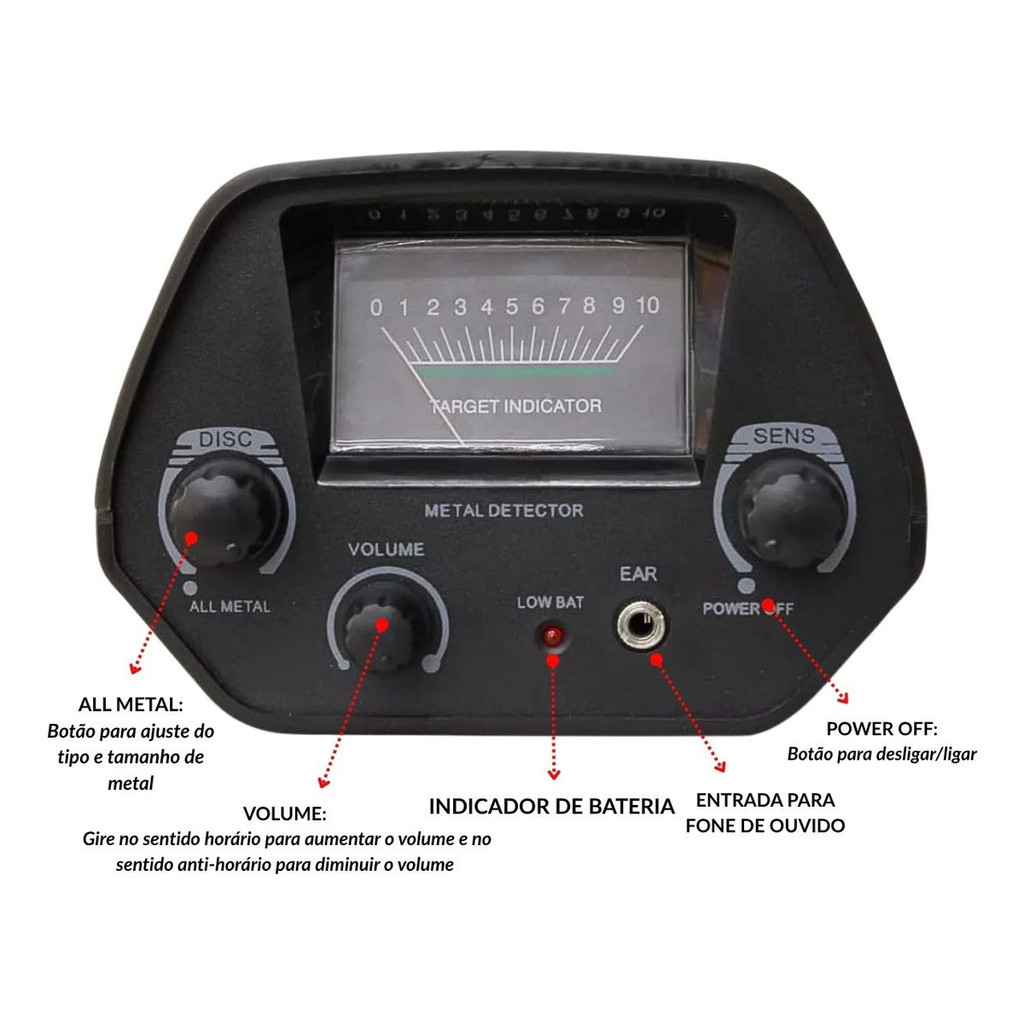 Detector De Metais Importway Prata Ouro Cobre 1,5m Profundidade Pá e Fone de Ouvido