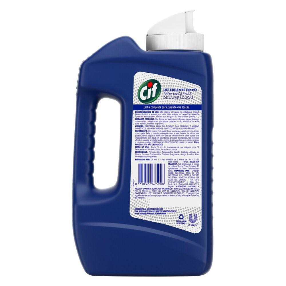 Detergente em Pó CIF para Lava Louças 1kg • Tecnologia Anti Corrosão; • Protege e Cuida; • Proteção de vidro; • Com a Tecnologia SUN; • Detergente Para Lava Louças; • Sabão para lava louça. CIF Detergente em Pó para Máquina de Lavar Louças é o seu mais novo aliado para lava louças de forma impecável. Sua fórmula, desenvolvida na França, possui tecnologias anti corrosão e vidro protetor, além do benefício que protege e cuida das louças. A nova linha CIF para máquinas de lavar louças, oferece a solução completa para sua casa, garantindo brilho e limpeza para louças e para sua máquina de lavar. CIF possui esse detergente para lava louças de 1 KG, que pode renderizar até 30 lavagens completas se seguir o modo de uso correto, para que você possa lavar pratos de forma prática e eficaz. CIF Detergente em Pó foi feito para usar na máquina de lavar louças e possui a tecnologia SUN. Sendo assim, é um sabão para lava louça, que é poderoso na limpeza e imbatível sem cuidado. CIF oferece uma linha completa de produtos para o cuidado das louças, pois sabemos a importância de um bom produto para quem ama a praticidade de uma lava louça. Para que se importe com uma limpeza poderosa, o CIF traz mais essa novidade de produtos, que são perfeitos para usar na lavadora de louça e será seu aliado em mais essa tarefa da casa. - Compre Produtos Cif.