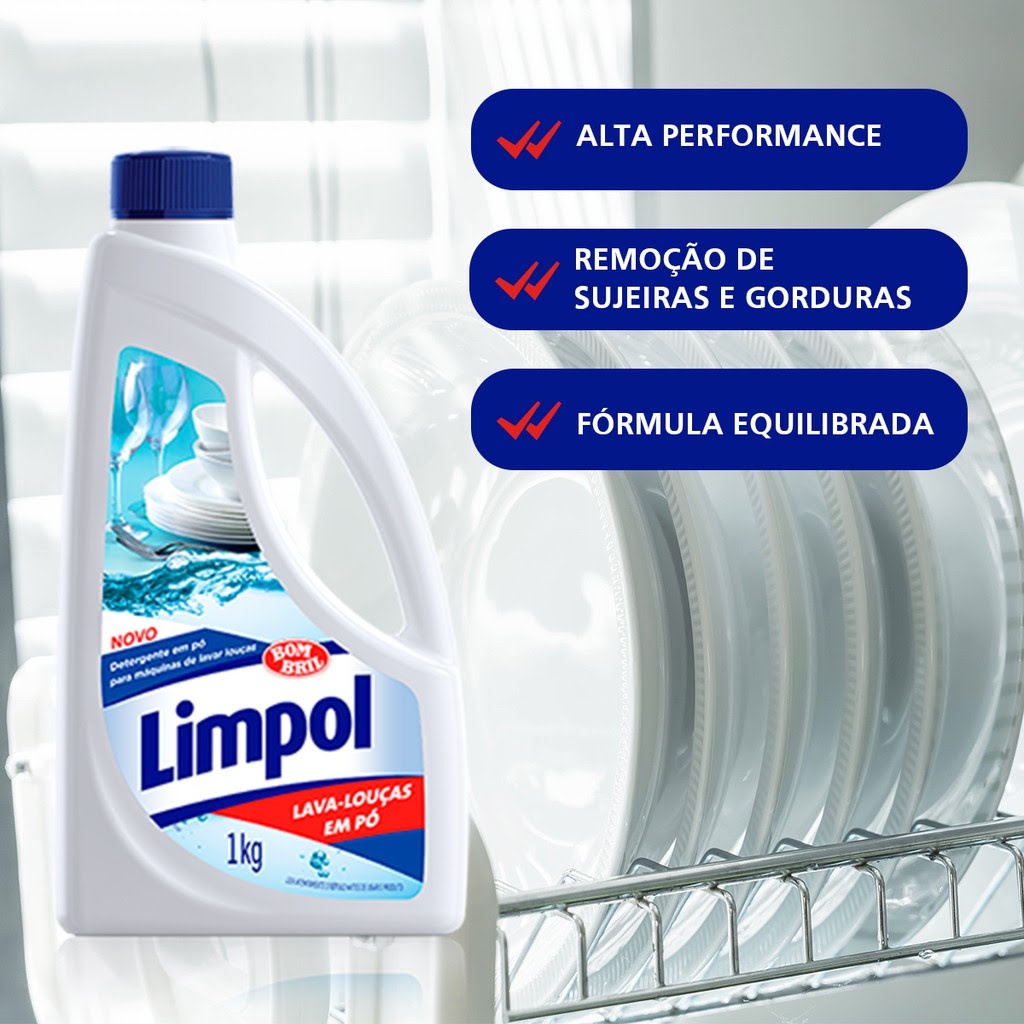 Detergente em pó para máquinas de lavar louças 1kg - Limpol Bombril
