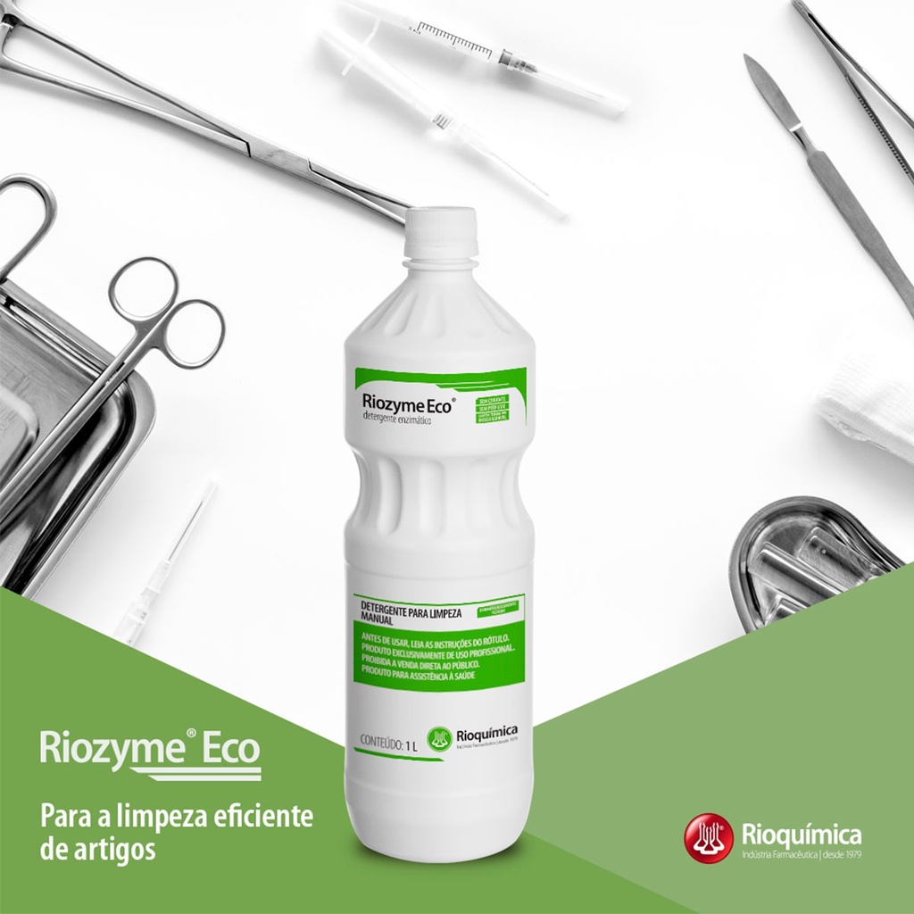 Nossa Empresa preza por um bom atendimento a mais de 10 anos nos segmentos Médico, Hospitalar e Odontológico. Kit com 01 Detergente Enzimático Riozyme Pré Lavagem com 750ml + 01 Detergente enzimático Riozyme Eco com 1 litro + 01 Embalagem para pré lavagem e 1 Bag. Indicado para a desinfecção de equipamentos materiais termosensíveis, outros materiais semicríticos e endoscópios. * Kit completo de Pré lavagem e lavagem enzimática, ambos com 4 enzimas. * PH Neutro. * Espuma umectante(somente no pré lavagem). * Dermatologicamente estado, atividade e estabilidade enzimatica comprovada.
