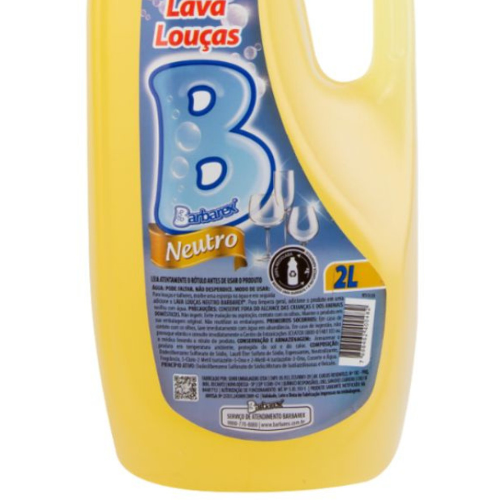 Detergente Lava Louças Economico Neutro Barbarex 2 litros