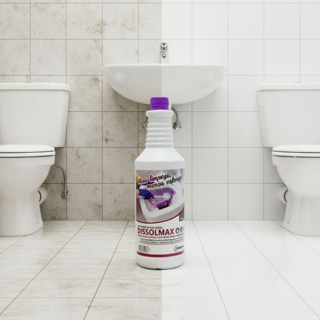 Conheça a SOLUÇÃO pros seu sanitário! DISSOLMAX!!! Com uma nova fórmula, mais segurança e eficiência, Dissolmax é uma evolução do que temos de melhor pra limpeza de vasos e louças sanitárias, agindo como um detergente concentrado removendo manchas antigas, marcas de água e encardidos com muito mais facilidade! Dissolmax é uma SOLUÇÃO CHEMISCH para você dona de casa que sofre com as marcas de água e manchas em vasos sanitários não saem com as misturas que inventam. Conheça como usar: Dissolmax é um produto que foi desenvolvido, especialmente para a limpeza de louças sanitárias (vasos, mictórios), pisos e azulejos encardidos. NÃO UTILIZAR Dissolmax em mármores, granitos, granilites (polidos), e caso haja soleiras destes materiais ou partes onde este possa escorrer, faça uma proteção com um pano enxarcado em água com detergente NEUTRO. FORMAS DE USO E DILUIÇÃO: Para vasos sanitários - remova a água do sanitário e em seguida aplique o produto, espalhando-o com o auxílio de uma fibra ou escova sanitária. Deixe-o agir por no mínimo 5 minutos (de acordo com o nível de sujidade do ambiente), esfregue e enxague. Para limpeza de pisos - Diluir Dissolmax em 1:10 (1L de produto para até 10L de água), de acordo com o nível de sujidade da superfície. Aplique o produto e espalhe-o com o auxílio de uma fibra ou esfregão, deixando-o agir por pelo menos 5min sobre a superfície encardida. Após o tempo de ação, esfregue e enxágue! ADENDO: Dissolmax não tem função PÓS OBRA, sendo produzido com objetivo de limpeza principal em louças e vasos sanitários! Não nos responsabilizamos pelo uso indevido do produto! Manter longe do alcance de crianças e animais.