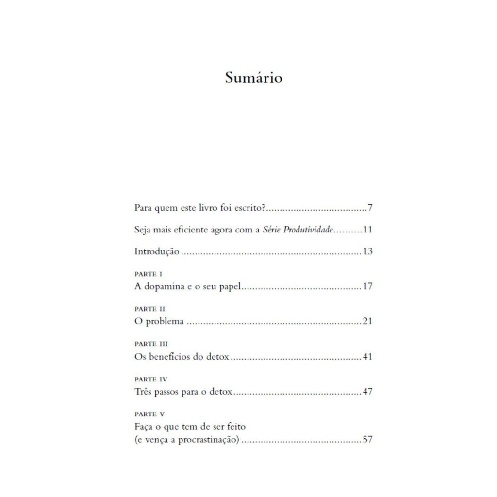 Recupere seu foco em até 48 horas.Você é do tipo de pessoa que vive ansiosa? Fica impaciente e não consegue se concentrar em tarefas do dia a dia? Pega impulsivamente o celular e por horas fica correndo as redes sociais? Tem dificuldade para ficar entusiasmado com metas importantes? Se sim, provavelmente você precisa de um detox de dopamina. No mundo de hoje, a todo momento estamos cercados por estímulos e distrações que diminuem nossa capacidade de se concentrar, e que faz de nós uma sociedade ao mesmo tempo conectada e distante do que acontece à nossa volta. Se você sofre com esse excesso de estímulos, Detox de dopamina, o primeiro livro da Série Produtividade, ajudará a retomar seu foco em até 48 horas para lidar com suas tarefas e objetivos. Neste livro, você aprenderá: - O que é e como funciona a dopamina; - Os principais benefícios da desintoxicação de dopamina; - Três etapas para implementar uma desintoxicação bem-sucedida; - Exercícios práticos para eliminar distrações e aumentar seu foco; - Ferramentas e técnicas para evitar a superestimulação e ajudá-lo a manter o foco — e muito mais.