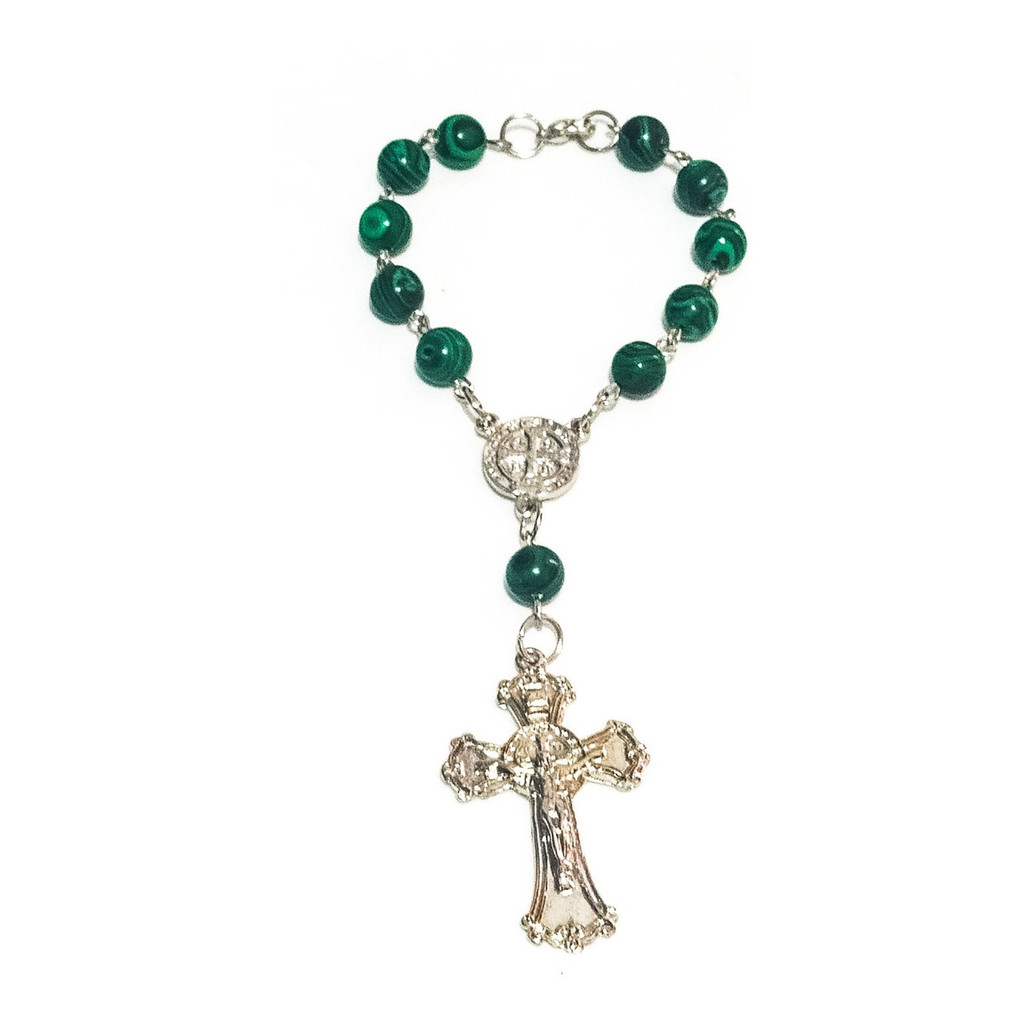 Dezena São Bento Pedra Malaquita 8mm - Mini Terço Carro