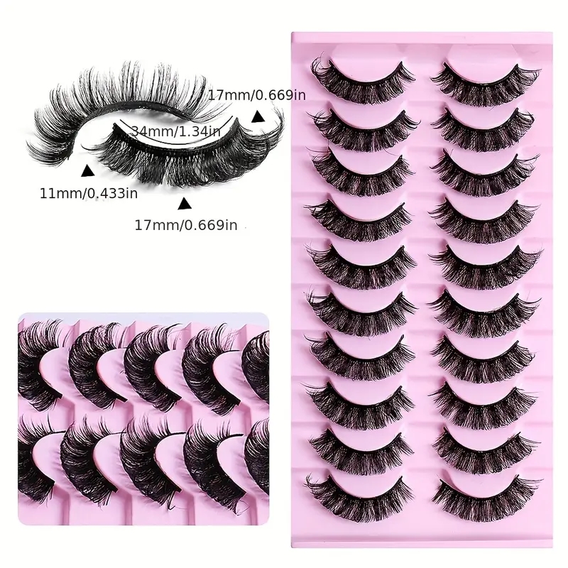 10 pares de cílios postiços DH ondulados e grossos, destacando maquiagem chamativa com cílios longos e volumosos; Cílios postiços dramáticos, volumosos e enrolados - 10 pares, perfeitos para o look de maquiagem diária para viagens; Cílios adequados para iniciantes usarem repetidamente.