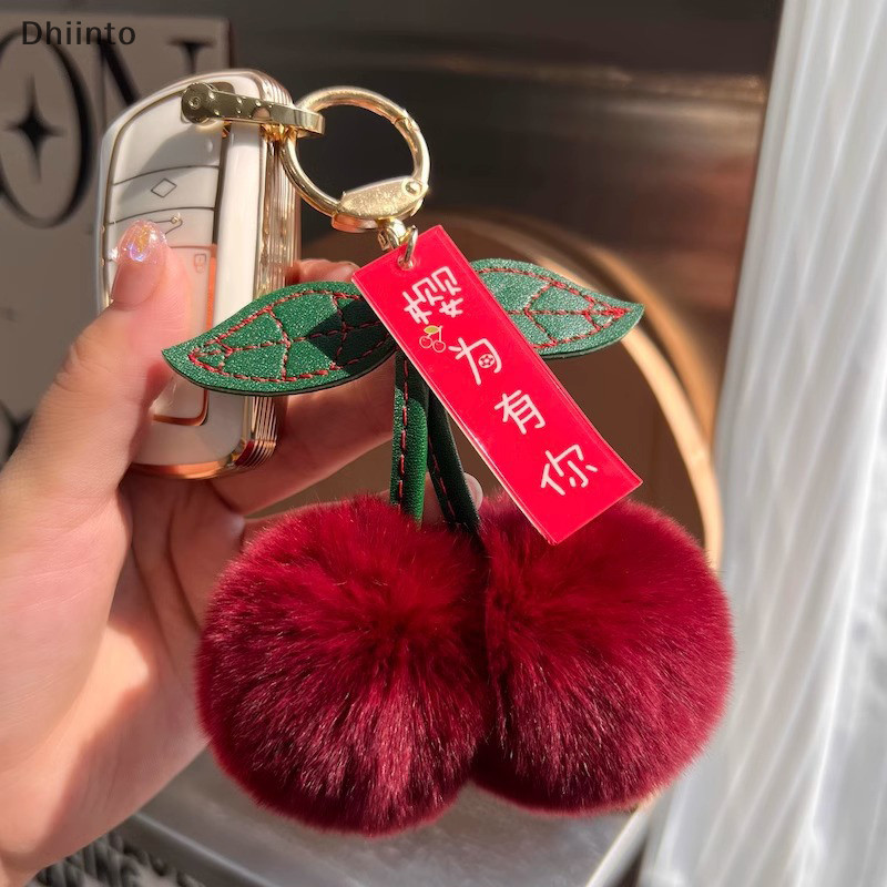 [Dhiint] Chaveiro Fofo De Folha De Pompom Rex Cereja Bolsa Pingente Anel De Carro Em