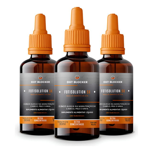 O único Bloqueador de DHT Aprovado no Brasil com a Tecnologia FOTI SOLUTION 5X A primeira e única fórmula aprovada em todos os testes de eficácia laboratoriais que quando usada elimina a queda capilar em 3 semanas e restaura suas regiões de falhas na cabeça em 90 dias. Elimina 99,7% da Queda Capilar: - Aprovado nos Testes o Fortalecimento do Cabelo em 461% - Crescimento 5x mais Rápido de novos Fios - Aumento Acelerado de Volume do Cabelo - 100% Natural e Sem Efeitos Colaterais VEJA O QUE A AÇÃO DO DHT BLOCKER FAZ NO SEU ORGANISMO JÁ NOS PRIMEIROS DIAS DE USO Bloqueia o Hormônio DHT: Níveis altos do Hormônio DHT são responsáveis por ocasionar o adoecimento de regiões da cabeça causando queda acelerada. Libera as Papilas Entupidas: Ao liberar as papilas entupidas dos folículos capilares, as regiões ficam livres para retomar o crescimento natural de fios. Fornece Nutrientes para o Desenvolvimento de Fios: Após o bloqueio do Hormônio DHT e a liberação das papilas, o couro cabeludo volta ao normal e o cabelo volta a crescer. O Tratamento DHT BLOCKER é uma resposta completa e extremamente eficaz, tratando múltiplos problemas simultaneamente. Validado e comprovado pela ciência, promove um tratamento rápido, confiável e eficaz, resolvendo todos os problemas que causam a Calvície, tornando possível o crescimento de cabelo de forma acelerada, e sem Efeitos Colaterais. Comparado com os principais Métodos tradicionais usados por todo o mundo, inclusive ao Minoxidil e Finasterida, teve uma ação de eficácia até 5x mais acelerada e duradoura que todos eles. Aprovado pela ANVISA! O Tratamento do DHT BLOCKER segue os padrões mais rigorosos da indústria, tendo autorização da ANVISA para ser produzido por todo o país. Uma fórmula completa com tecnologia Importada essencial para devolver a alegria de voltar a ter cabelos cheios e volumosos em pouquíssimo tempo! - Testado e Aprovado - 5x mais forte e eficaz que Minoxidil e Finasterida - Não causa dependência e nem Efeito colateral Qual o modo de uso? Esteja atento(a) para que seu tratamento seja eficaz! - PRIMEIRO PASSO Coloque 1ml (12 gotas) do produto diretamente na sua boca embaixo da sua língua quando estiver indo dormir. - SEGUNDO PASSO Não ingerir com bebidas quentes ou geladas na hora para maior eficácia da fórmula. - TERCEIRO PASSO Tome apenas uma vez por dia e você terá o resultado esperado e o crescimento acelerado do seu cabelo. NÃO ESPERE MAIS PARA RECUPERAR SEUS FIOS DE CABELOS PERDIDOS! Aviso legal • Consumir junto com alimentos para facilitar sua assimilação. • Este produto é um suplemento dietético, não um medicamento. Suplementa dietas insuficientes. Consulte o seu médico e/ou farmacêutico.