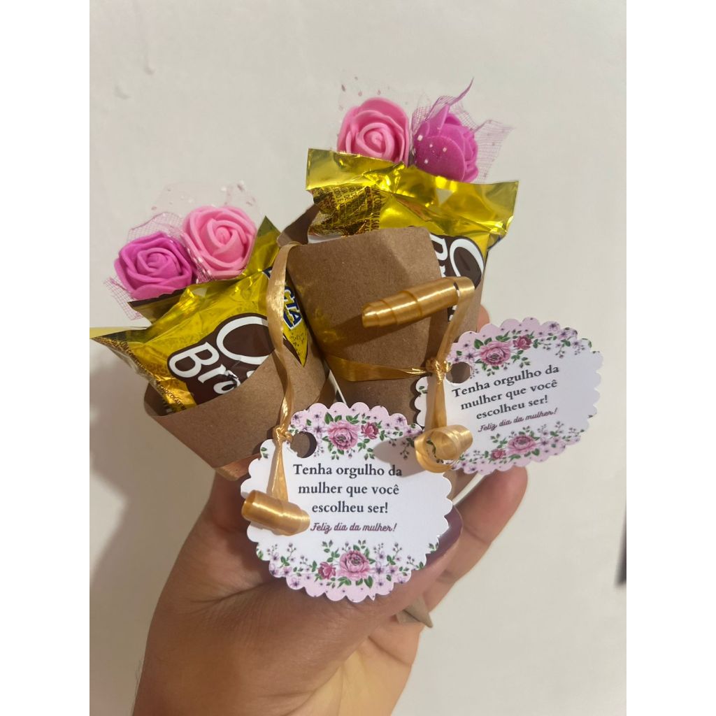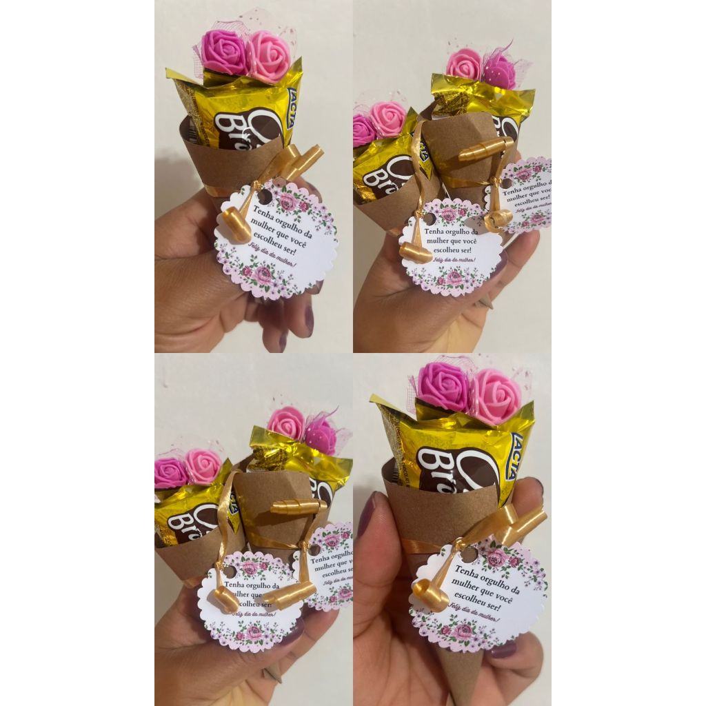 DIA DAS MULHERES! KIT COM 6 MIMOS / LEMBRANCINHAS EM MINI BUQUÊ COM BOMBOM / CHOCOLATE + TAG SIMPLES