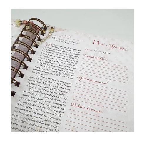 O Diário de Oração auxilia nas anotações e nos estudos do dia a dia e aplicações pessoais. Contém espaço para anotar pedidos e respostas de oração, e acompanha com um devocional repleto das bênçãos de Deus e oferecea oportunidade de registrar a jornada de fé, oração e louvor a Deus.Paginas: 392
