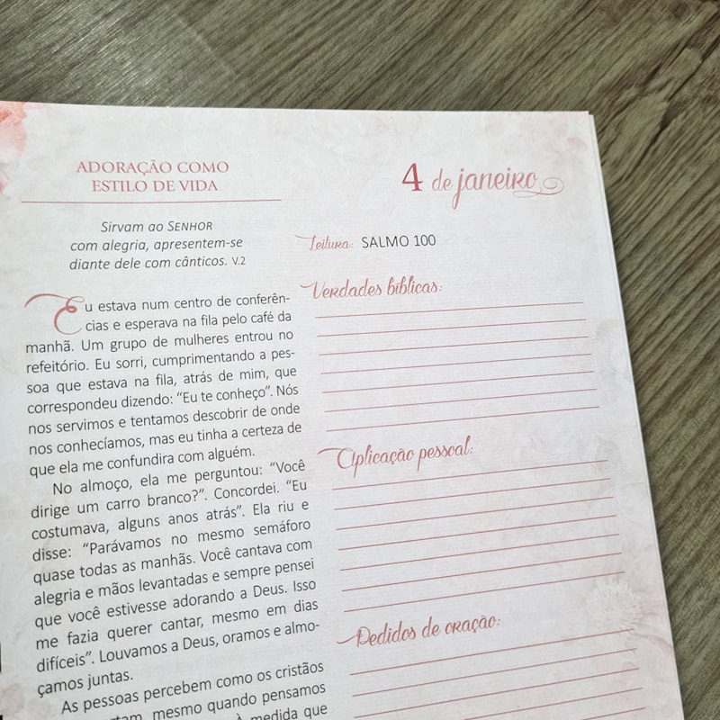 Livro Diário de Oração Refugio As adversidades muitas vezes nos cercam, fazendo-nos sentir sós e desprotegidas. Mas o bom é saber que o Senhor Deus é o nosso refúgio. Por isso, temos um lugar seguro para onde correr quando a angústia e a dor tomam conta de nós: a presença de Deus! Esse é o melhor lugar para se estar, pois ali recebemos o Seu cuidado em cada detalhe e situação, aconchegadas e protegidas sob Suas asas. Temos a garantia, em todos os momentos, de que Sua forte e segura defesa nos preservará. Que encontremos no Senhor a força e a alegria para enfrentarmos os desafios e lutas diárias. Aproveite para registrar em seu Diário de Oração os momentos de conforto, refrigério e fortalecimento de Deus para a sua vida! Que o Senhor, que está sempre com você, fale ao seu coração através destas reflexões. Contém: Um plano de leitura anual da Bíblia; Uma meditação para cada dia do ano; Espaços para anotar as verdades bíblicas, a aplicação pessoal, os pedidos e as respostas de oração. Especificações do livro Diário de Oração Título: Diário de Oração Autor(es): Adam Holz, Alyson Kieda, Amy Boucher... Ano de Edição: 2022 Capa: Dura Acabamento: Laminação Fosca Miolo: Papel OffSet Páginas: 392 Dimensões: Altura: 21,5 cm Largura: 17 cm Profundidade: 3 cm Peso: 0,540 kg ISBN: 9786587506906 Editora: Pão Diário