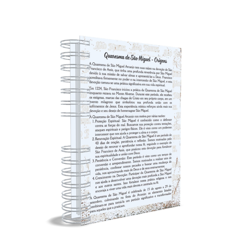 Sejam Bem-vindos à nossa Loja Virtual Doce Sonho Ateliê! Estamos localizados em Franca / SP, onde cada produto é feito com carinho, fé e devoção. Produto: Apresentamos o Diário Quaresmal de São Miguel 2026, uma forma única de organizar sua quaresma e fortalecer sua fé, nessa epoca tão importante para nós católicos. Benefícios e Diferenciais: Capa Exclusiva: Comece cada dia com a proteção e inspiração. Planejamento diário: Organize-se com páginas dedicadas, repletas de mensagens de reflexão e espiritualidade. Organização Total: Ferramenta ideal para suas orações diárias. Papel de Alta Qualidade: Sinta a suavidade das páginas premium enquanto escreve. Especificações Técnicas: Capa Personalizada Páginas: Aprox. 200 páginas / 100 folhas Formato: A5 Papel: Premium Conteúdo: - Origem Quaresma de São Miguel - Pedidos de Orações - Orações diárias - Páginas pautadas dia 01 a 40 - Terços e Anotações - 140 páginas de anotações Transforme sua quaresma com fé e organização! Adquira já a sua!