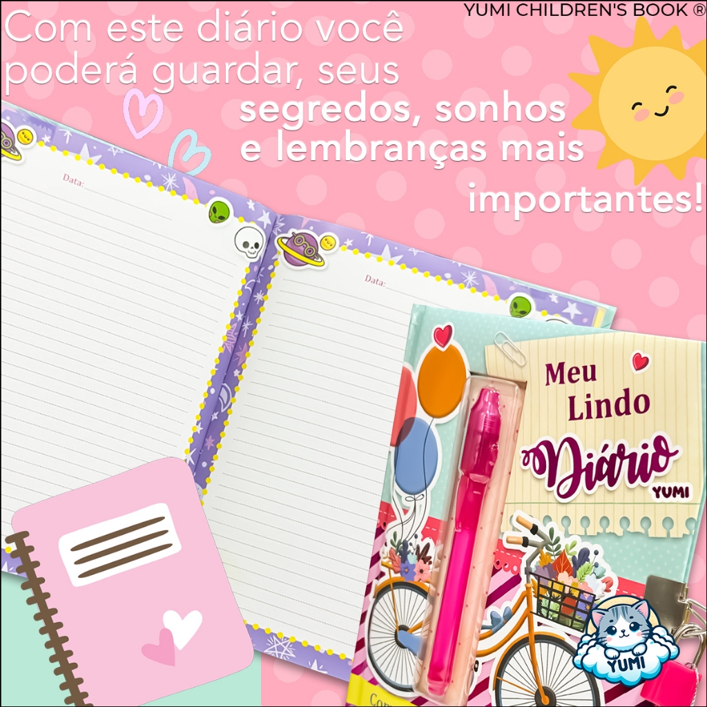 Diário Secreto Infantil Para Meninas Rosa com Caneta Mágica Invisível - Meu Lindo Diário