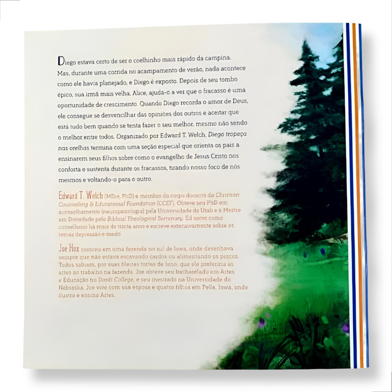 Medidas: 21x21Páginas: 32Peso: 133gCapa: MoleDiego estava certo de ser o coelhinho mais rápido da campina. Mas, durante uma corrida no acampamento de verão, nada acontece como ele havia planejado, e Diego é exposto. Depois de seu tombo épico, sua irmã mais velha, Alice, ajuda-o a ver que o fracasso é uma oportunidade de crescimento. Quando Diego recorda o amor de Deus, ele consegue se desvencilhar das opiniões dos outros e aceitar que está tudo bem quando se tenta fazer o seu melhor, mesmo não sendo o melhor entre todos. Organizado por Edward T. Welch, “Diego tropeça nas orelhas” termina com uma seção especial que orienta os pais a ensinarem seus filhos sobre como o evangelho de Jesus Cristo nos conforta e sustenta durante os fracassos, tirando nosso foco de nós mesmos e voltando-o para o outro.