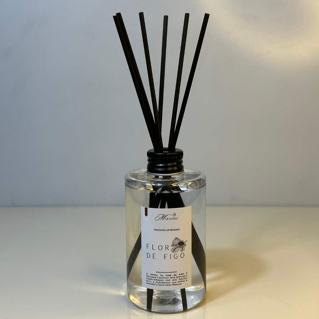 O aroma de flor de figo é delicado e encantador, combinando a suavidade floral com nuances frutadas e verdes. É um perfume que captura a essência fresca e levemente adocicada das flores de figo, com um toque sutil que lembra o frescor das folhas verdes e da seiva da planta. Este aroma tem uma base frutada e suave, com uma doçura natural que não é excessiva, mas sim refinada e envolvente. Há também uma nota leve de cremosidade que acrescenta profundidade e complexidade à fragrância. O perfume da flor de figo evoca imagens de jardins mediterrâneos banhados pelo sol, trazendo uma sensação de tranquilidade e beleza natural. É uma fragrância que transmite elegância e serenidade, ideal para criar um ambiente relaxante e sofisticado. Acompanha 6 varetas em fibra preta de 20cm Medidas: A- 11cm s/ vareta L- 5,50cm