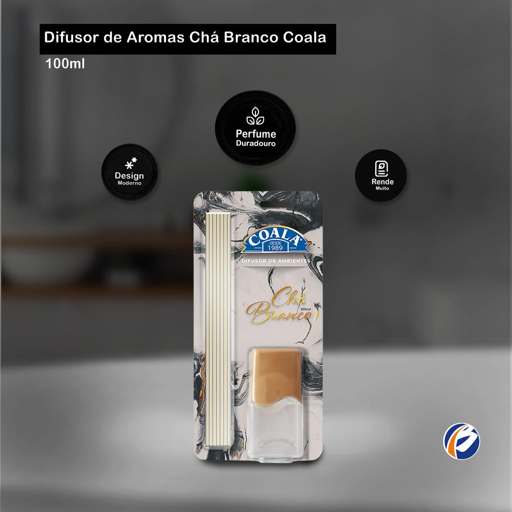 Difusor de Aromas Chá Branco 100ml Coala Coala Difusor de Aromas é um excelente aromatizador de ambientes. Além de garantir o aroma, decora o ambiente com design moderno. Com a variedade de fragrâncias é possível variar o uso entre os ambientes, garantindo sensações únicas em cada um. A duração do produto é diretamente influenciada pelas condições climáticas como calor, frio e exposição ao sol. Em ambientes grandes, pode ser necessário dois ou mais difusores. Indicação de Uso: - É recomendado não deixar próximo a saídas de ar-condicionado, janelas e cortinas. Fragrância: Chá Branco Embalagem: 01 Difusor de 100ml