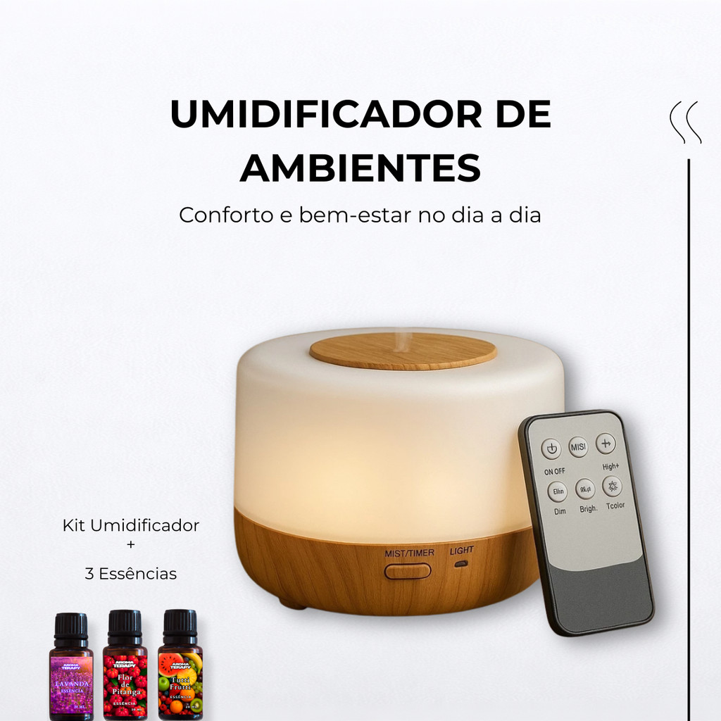 Difusor De Aromas Umidificador De Ar + 3 Essências 500Ml Difusor De Aromas Vaporizador de Ambientes