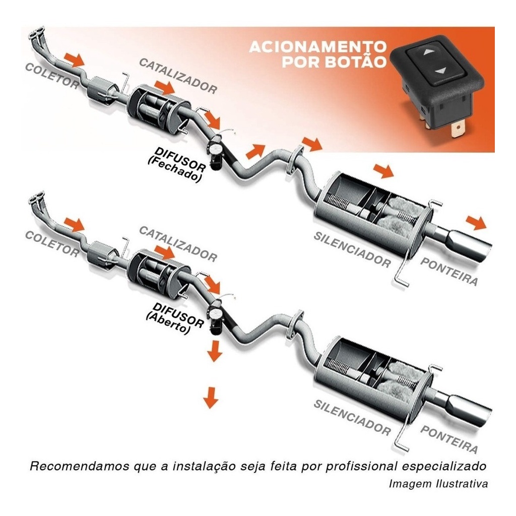 Cor Disponível: • Preto Modelo Disponível: • 2 Polegadas Compatível com: • Universal Especificação Técnica: • Estrutura Confeccionada em Aço • Cano em Formato Y Preto • Solda Tipo MIG • Alimentação Bateria 12V • Adaptação sem Corte de Fios • Válvula em Metal • Fácil Instalação • Excelente Durabilidade e Resistência • Alternância dos Ruídos por Meio do Botão Interruptor • Ronco Esportivo • Compatibilidade Universal • Ótimo Acabamento OBS.: O modelo do Botão poderá variar conforme a disponibilidade em estoque. Medidas Aproximadas: Escapamento Esportivo Difusor 2 Polegadas: Diâmetro aprox. do bocal: 5cm Dimensões aprox. do bocal: 24x14cm Escapamento Esportivo Difusor 2,5 Polegadas: Diâmetro aprox. do bocal: 6cm Dimensões aprox. do bocal: 24x15cm Escapamento Esportivo Difusor 3 Polegadas: Diâmetro aprox. do bocal: 7,5cm Dimensões aprox. do bocal: 24x18cm Conteúdo da Embalagem: • 01 Difusor de Escapamento • 01 Botão Interruptor
